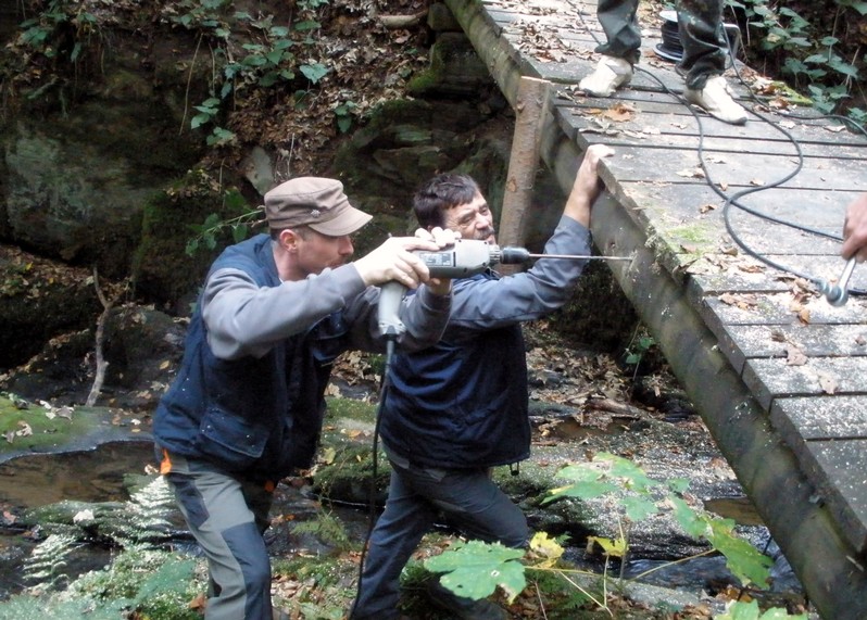 03.10.2011 Erster Arbeitseinsatz = Renovierung der Brücke im Ahringstal am „Rauschkümpel“